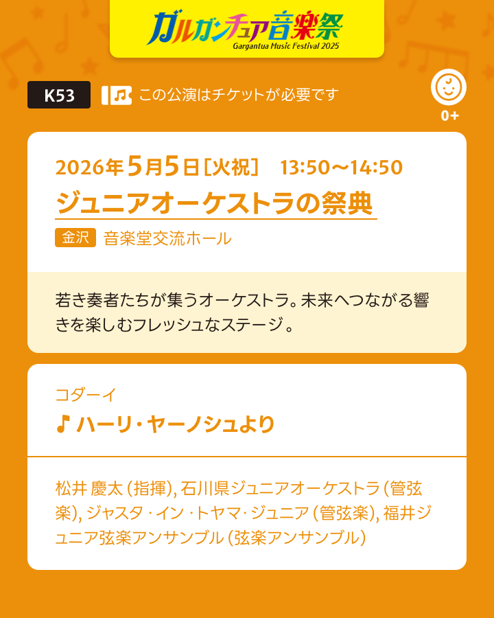5日は、北陸3県のジュニアオーケストラが集結した公演にエキストラ(チェレスタ)で参加します。5日の9:30〜9:50は、もてなしドーム地下広場で、ジュニアオーケストラの公開リハーサルも開催予定です。